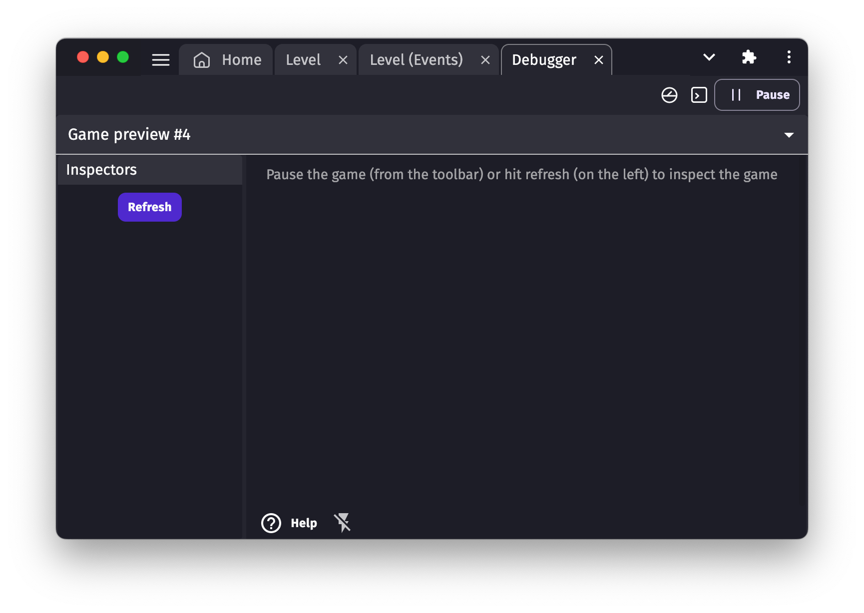 This will open a new tab called "Debugger" and will also launch a preview of your game as usual.