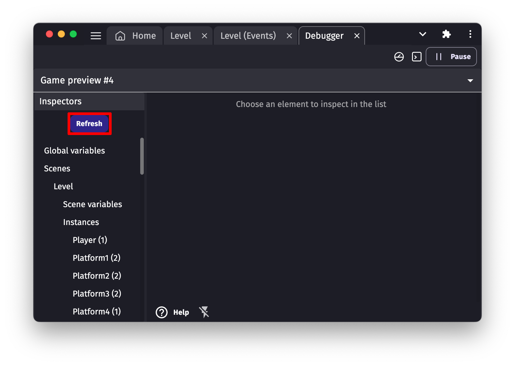 To do this, in the list, click on Global Variables, Scene variables, or the instance number that you want to inspect.
