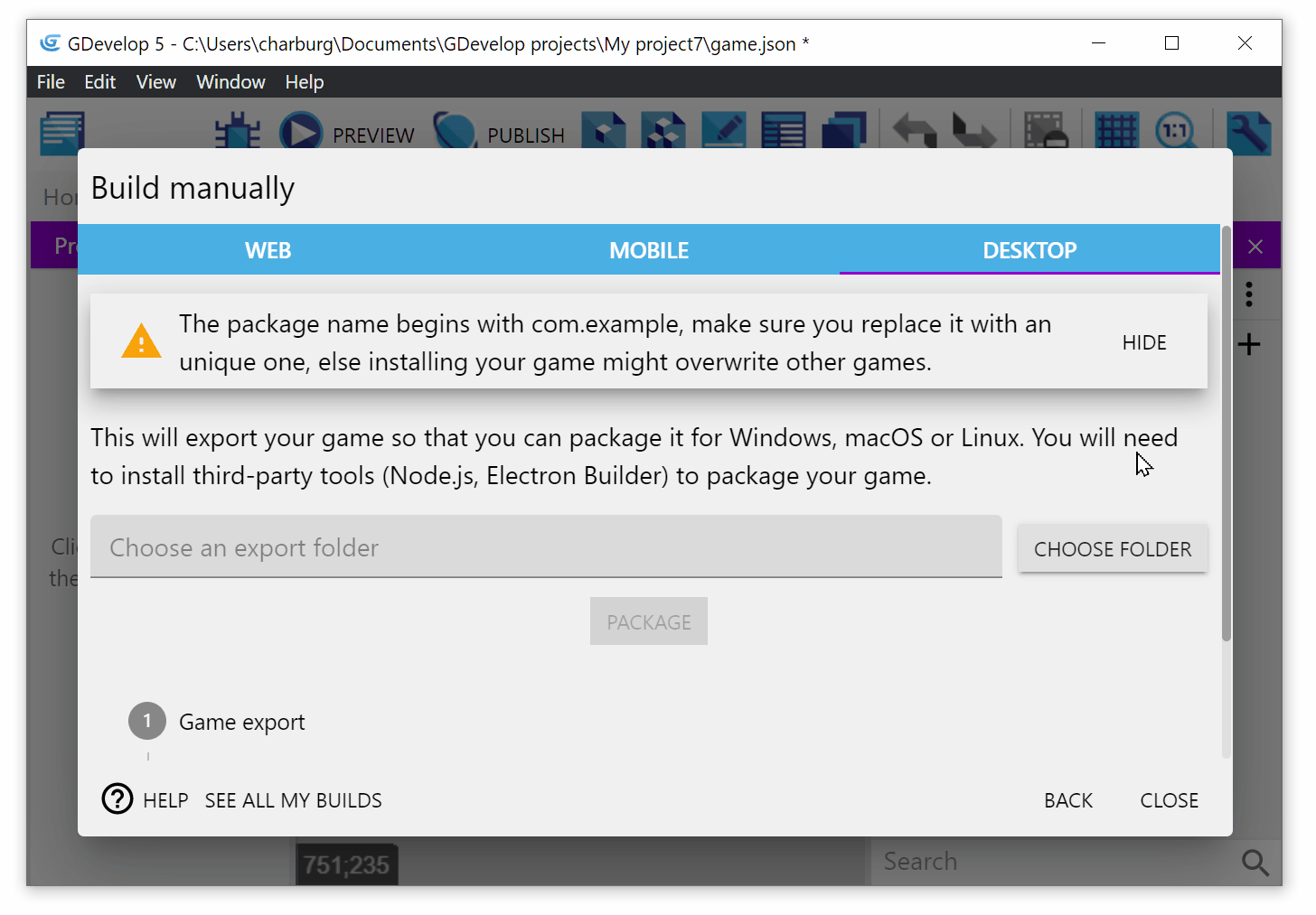Publish your game to Windows, macOS and Linux manually using Electron and Electron Builder