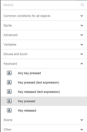 • Click Keyboard > Key pressed.